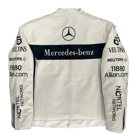 Giacca in Pelle Racing Mercedes-Benz Bianca – Stile F1