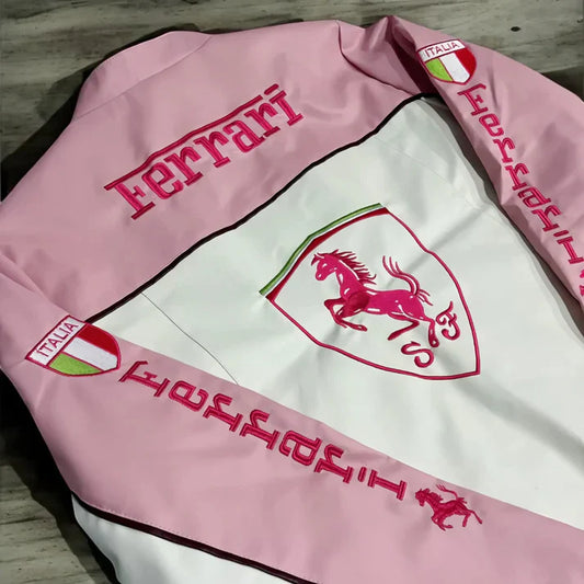 Pink Leather Racing Jacket – F1 Style